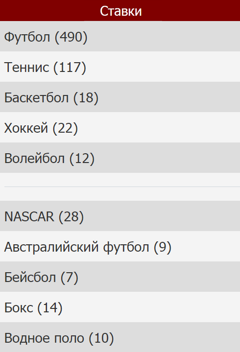 Шаг 2: Выбрать вид спорта
