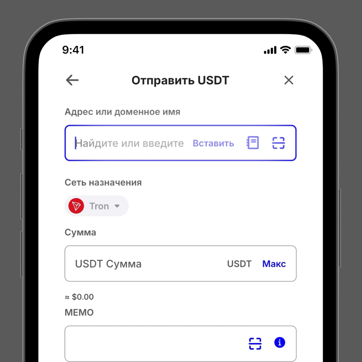 Теперь вы увидите главный экран с балансом. Ваш кошелек не привязан к имени, телефону или паспорту – контроль только у вас.