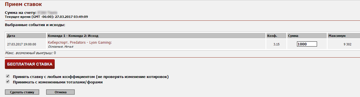 Нажмите на нее для добавления суммы ставки. После нажатия на эту кнопку сумма ставки не редактируется. Нажмите кнопку “Сделать ставку”, и Ваша бесплатная ставка будет принята. Если купон у Вас отключен - необходимо так же выбрать исход, нажать кнопку “Ставка”, и в новом окне появится возможность сделать бесплатную ставку таким же образом.