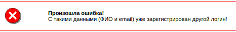 В каких случаях возникает ошибка при регистрации? При регистрации или заполнении Настроек безопасности сайт может выдавать ошибку «Пользователь с такими ФИО/e-mail уже существует».