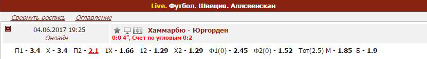 И другой исход в разделе Линия: