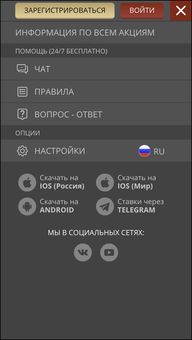 Зарегистрироваться можно со страницы «Вход», нажав на кнопку «Зарегистрироваться», или по такой же кнопке с бокового меню, которое раскрывается с верхнего правого угла.
